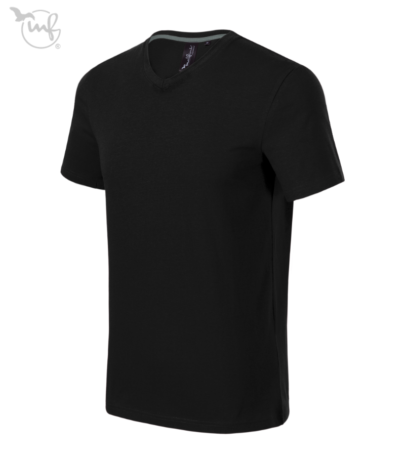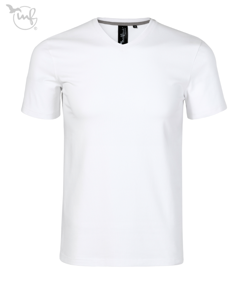 Meeste V-kaelusega T-särk trükiks. Veniv ja hästi vormi hoidev single jersey T-särk slim fit lõikega. Elastaan annab parema mõõtmete stabiilsuse ja mugavuse, V-kaelus ning kontrastteip taga kaeluses loovad puhta ja kvaliteetse viimistluse.